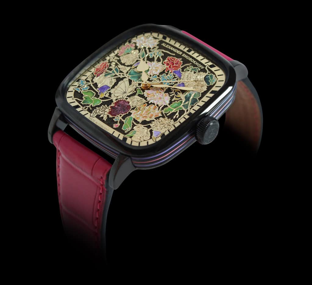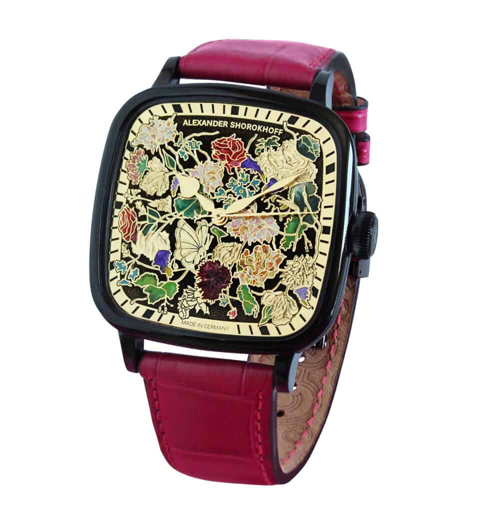 This latest Alexander Shorokhoff watch is not just a timepiece but a symbol of his boundless love for her. With a bouquet of flowers in the form of a watch, lovingly hand-painted with delicate blooms, he presents her with a reminder of their shared love that will forever flourish.