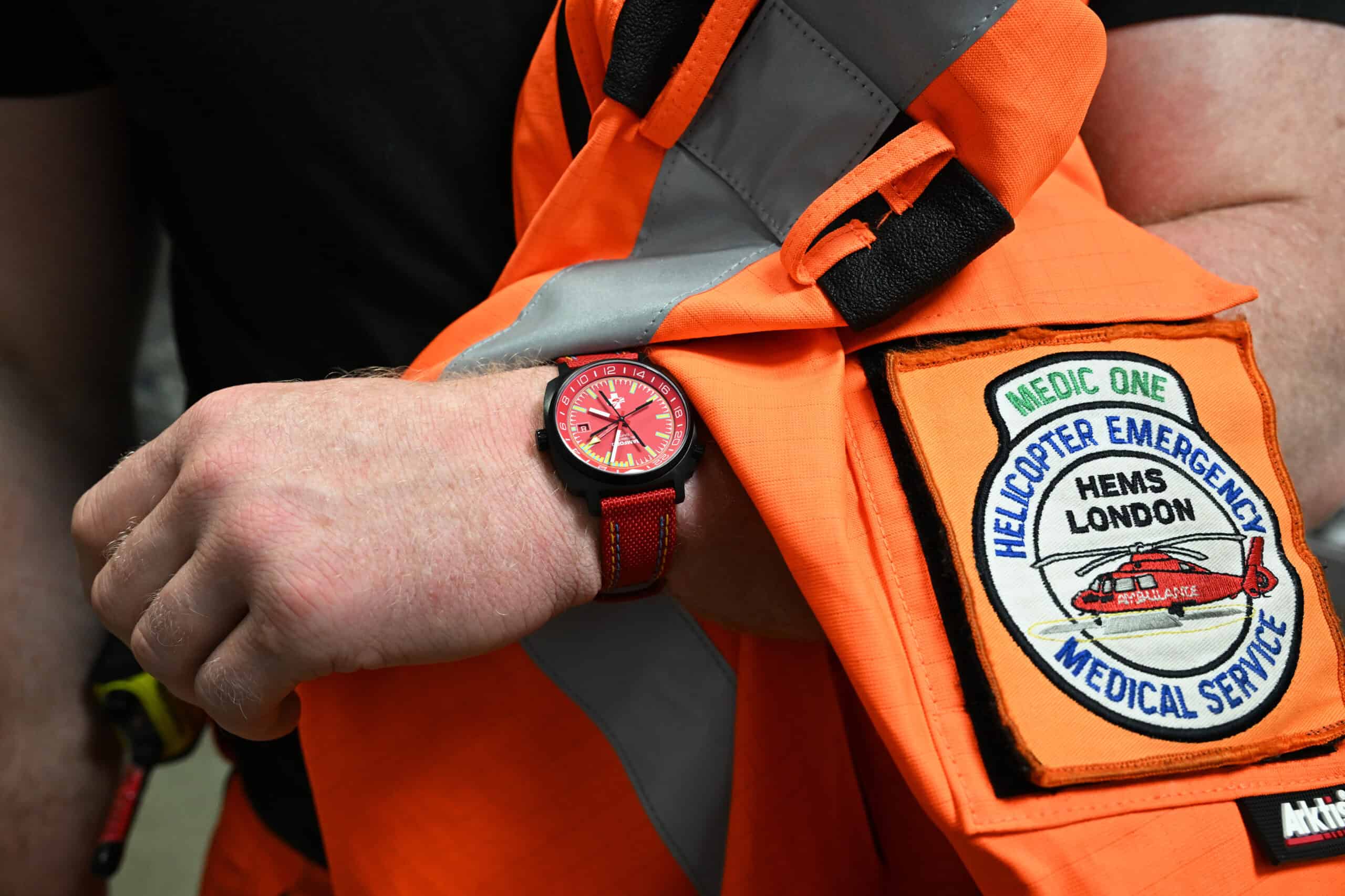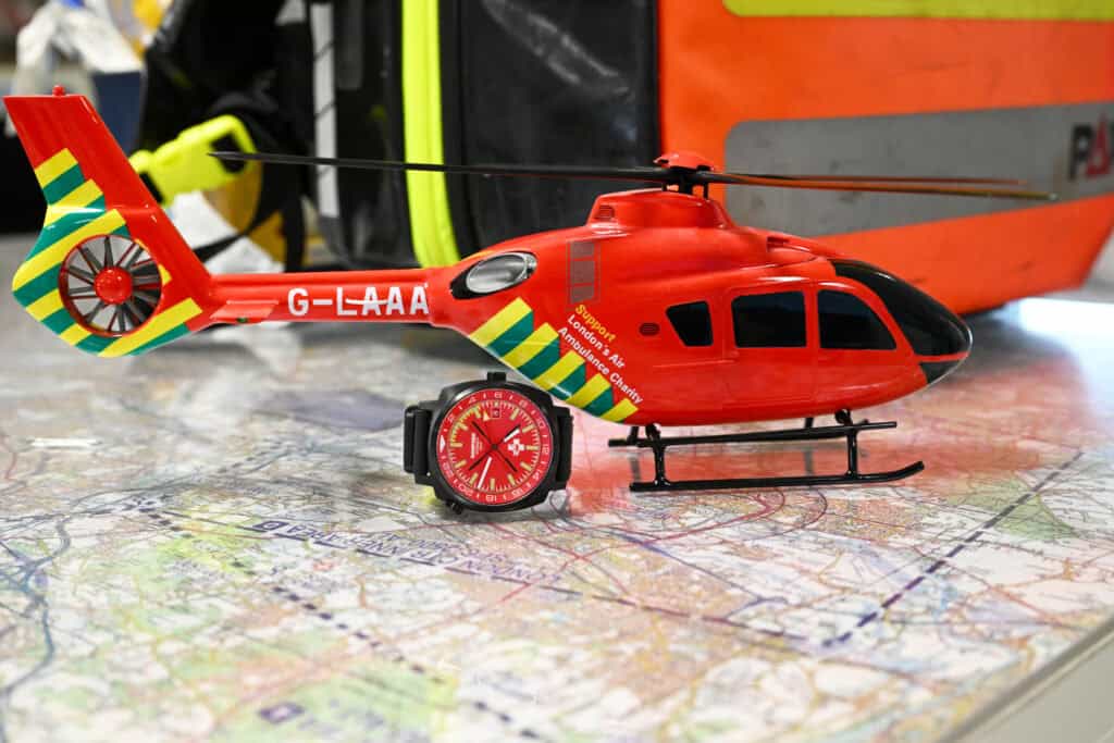 Inspired by the design and colour palette associated with London’s Air Ambulance Charity, the timepiece embodies both functionality and purpose. A distinctive design feature sees the traditional sweep seconds hand replaced with a replica of the helicopter’s rotor blades, a subtle yet powerful tribute to the aircraft at the heart of the charity’s life saving operations. Each watch serves not only as a precision instrument but also as a symbol of support for the charity’s critical work.