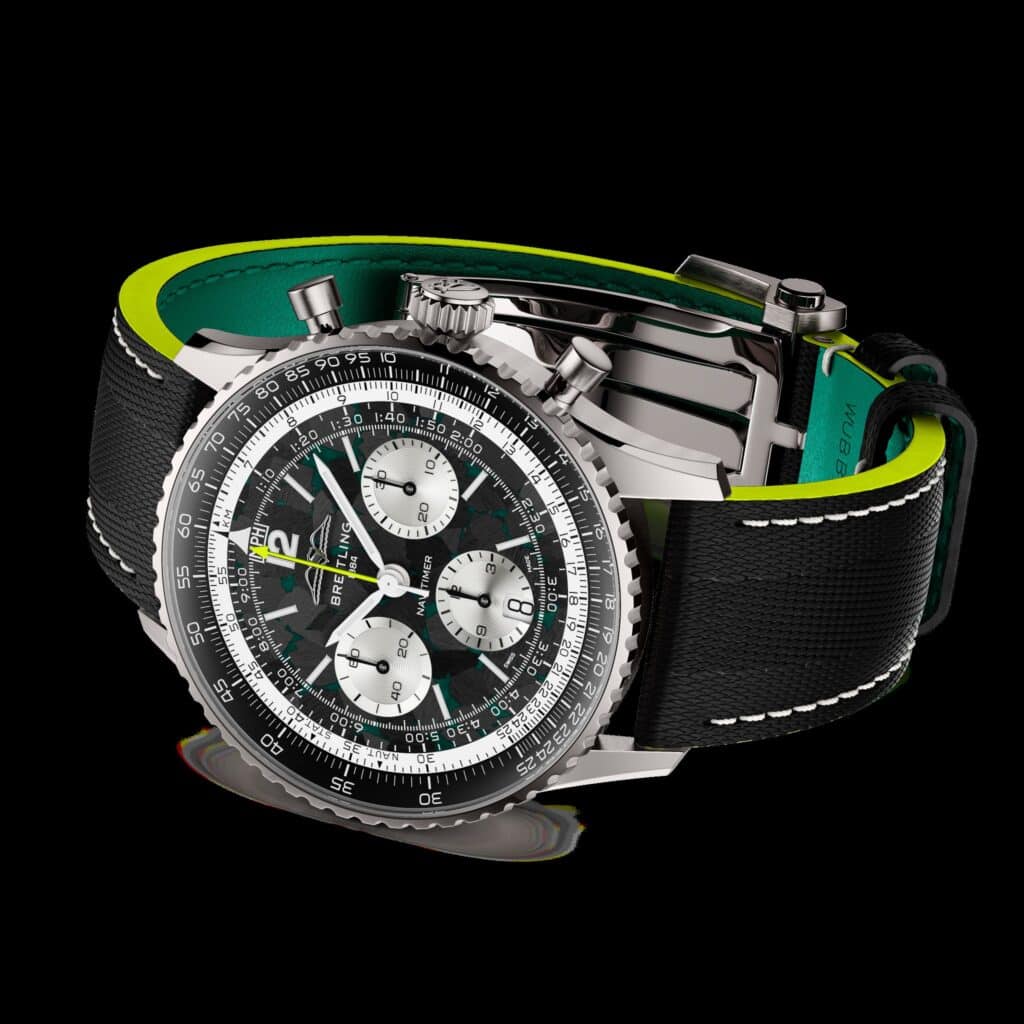 This new chapter opens with a statement piece: the Navitimer B01 Chronograph 43 Aston Martin Aramco Formula One™ Team Edition—a watch that signals Breitling’s return to the pinnacle of motorsport and repositions the Navitimer firmly back where it has always belonged: at the intersection of timing and velocity.