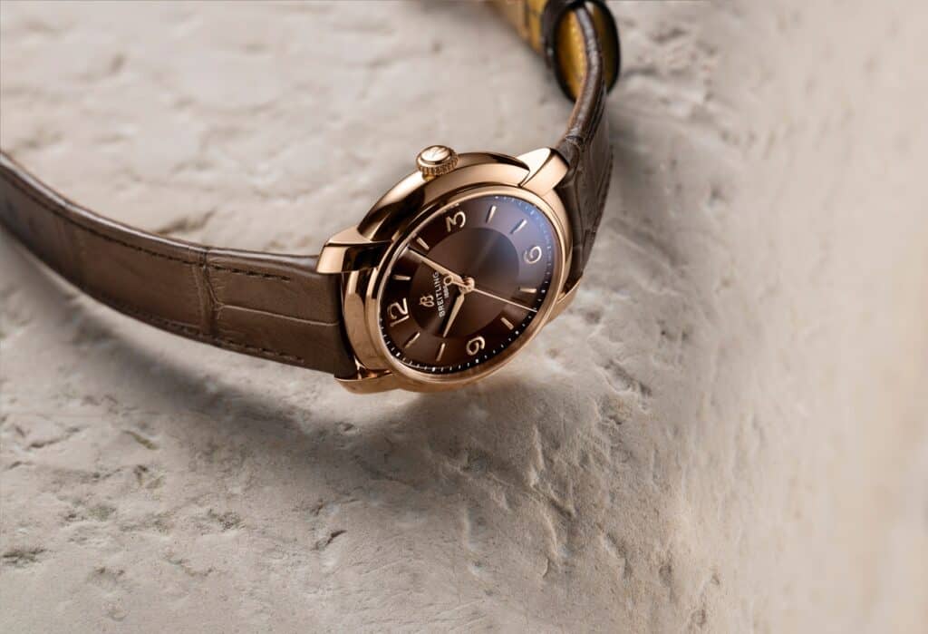 Select references feature diamonds set along the lugs and bezel in flowing, organic curves. On the dial, contrasting finishes—satin soleil at the center and rehaut, and circular brushing around the indexes—produce a luminous play of light. Minimalist Arabic numerals, faceted lozenge hands, and a sculptural crown underscore the collection’s jewelry-like elegance.