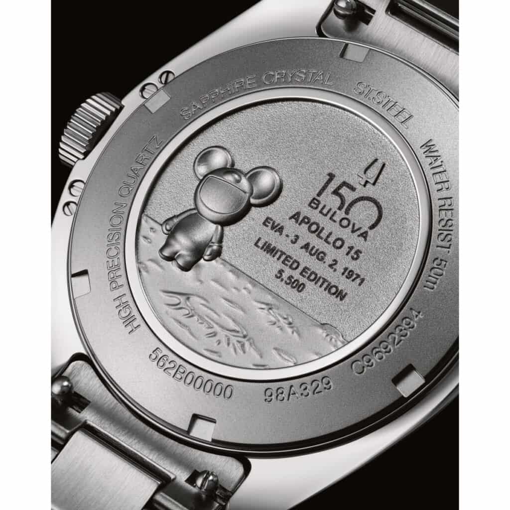 The case back is engraved with an exclusive Budii astronaut illustration, along with commemorative text paying tribute to the Apollo 15 mission, linking the watch to its place in space history.