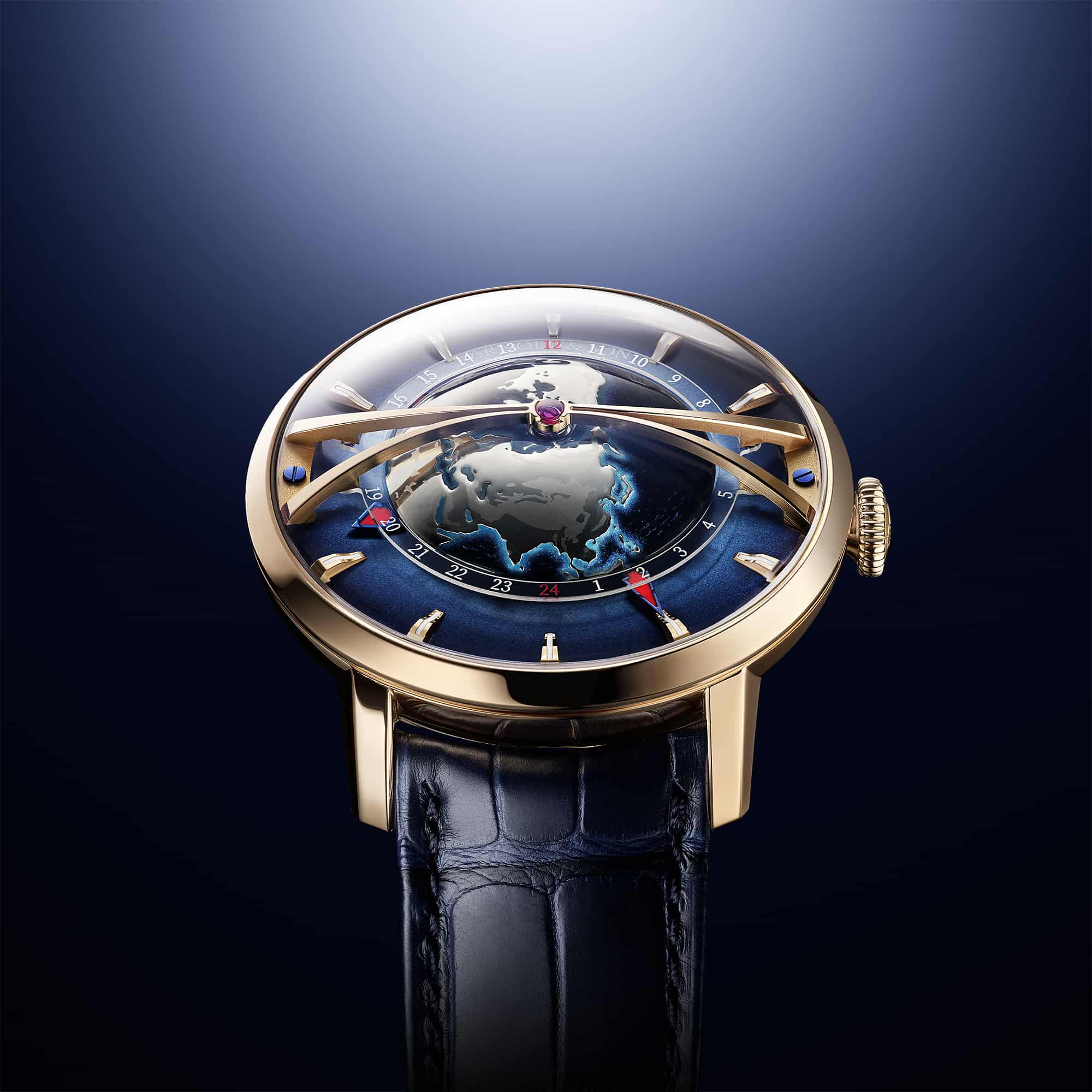 Read moreLike a finely-crafted atlas, the Globetrotter Gold represents our Planet. The lands seen on the surface are sculpted to precision and together