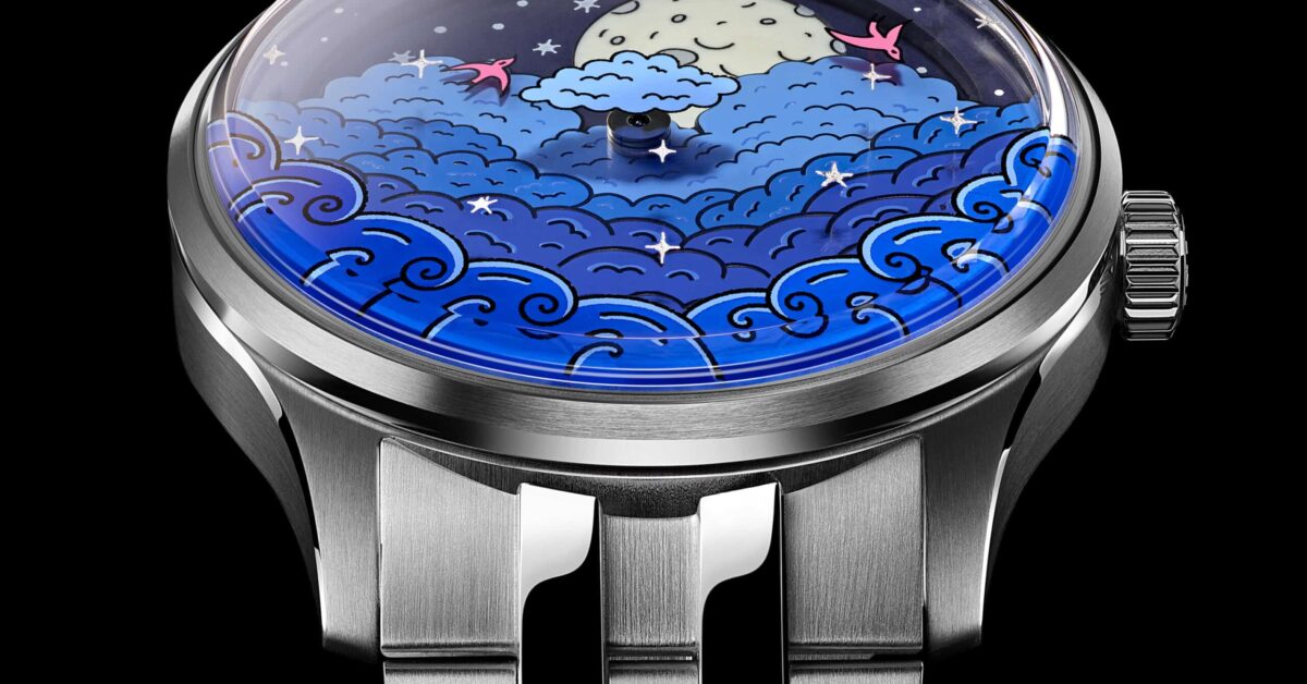 British independent watchmakers Christopher Ward and Mr Jones Watches have joined forces to launch a whimsical limited edition moon phase watch. The new Celestial watch, limited to 300 pieces, features a dream-like sky-space, complete with gilded silver stars, purple birds and a cheerful cartoon...