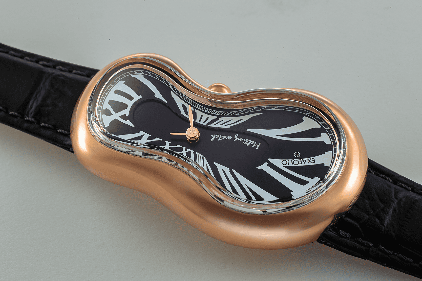 At a glance, an Exaequo watch looks as though it has slipped off the wrist and begun to melt. That, of course, is entirely the point.