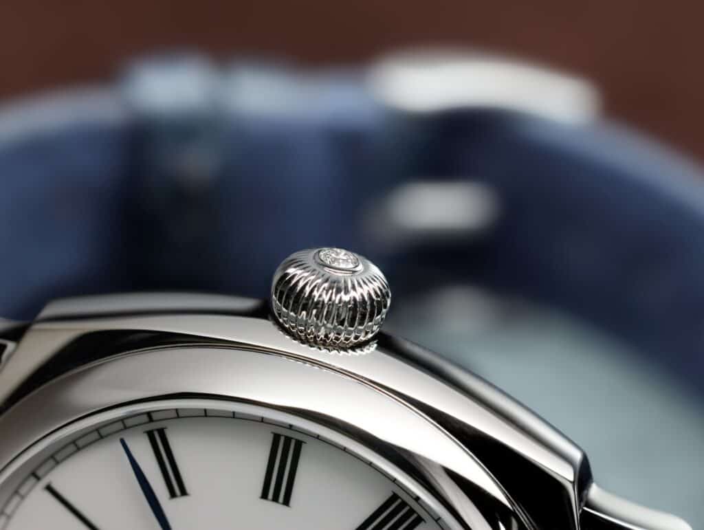Completing the watch is a Fears Blue pigs’ leather strap, fold-edged and lined with matching Fears Blue Alcantara®, finished with tone-on-tone stitching. This is no arbitrary choice: pigskin was the material most commonly used on early Fears wristwatches, particularly silver models from the 1910s and 1920s. It’s a small but telling nod to continuity.