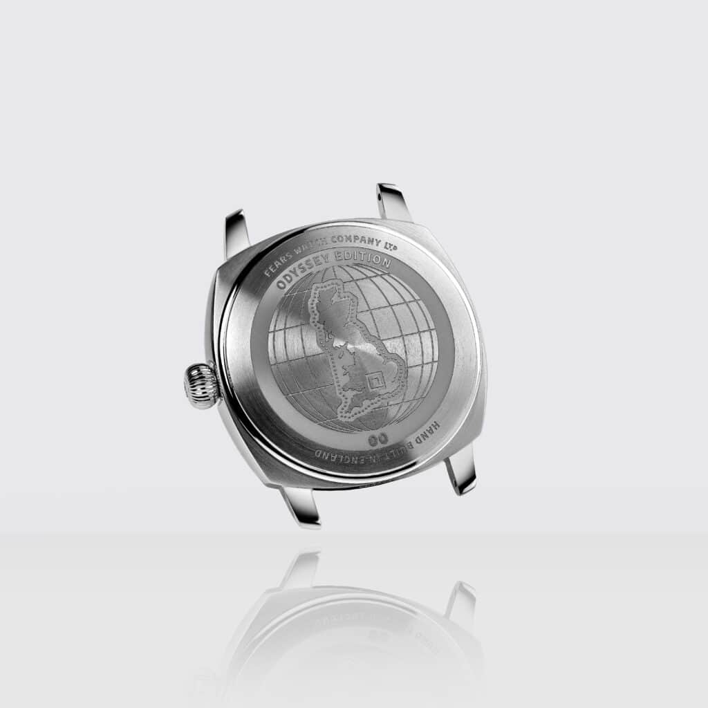 Each Brunswick 40 ‘Odyssey Edition’ is fitted with a commemorative case back featuring a detailed engraving of the British mainland and the route Angus will row during the world record attempt. Each case back displays the edition number from one to 100 which matches the owners’ card that accompanies each watch and is signed by both Angus Collins and Fears’ (4th) Managing Director, Nicholas Bowman-Scargill.