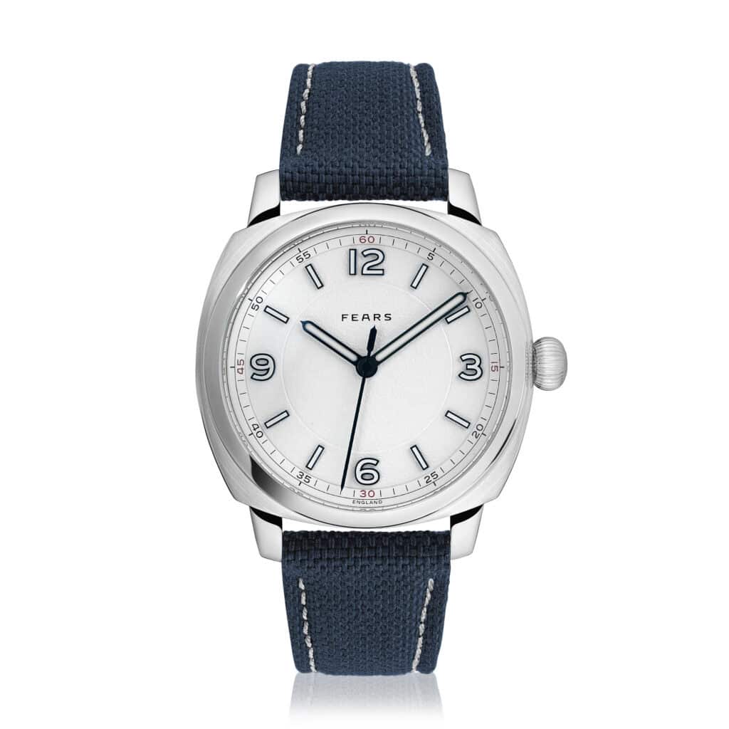 | HANDS | ‘Fears’ hands – filled with Grade X2 Super-LumiNova®. PVD coated in Fears Blue with matching seconds hand.Made in GermanySLN filled in Switzerland |