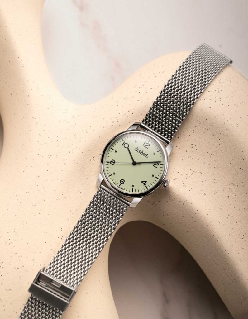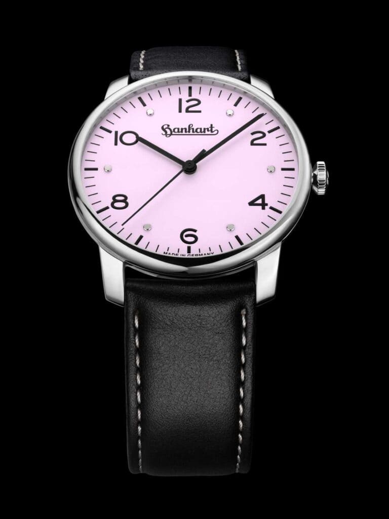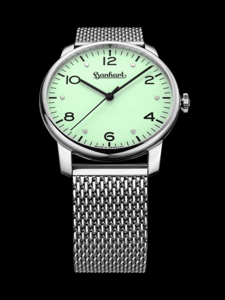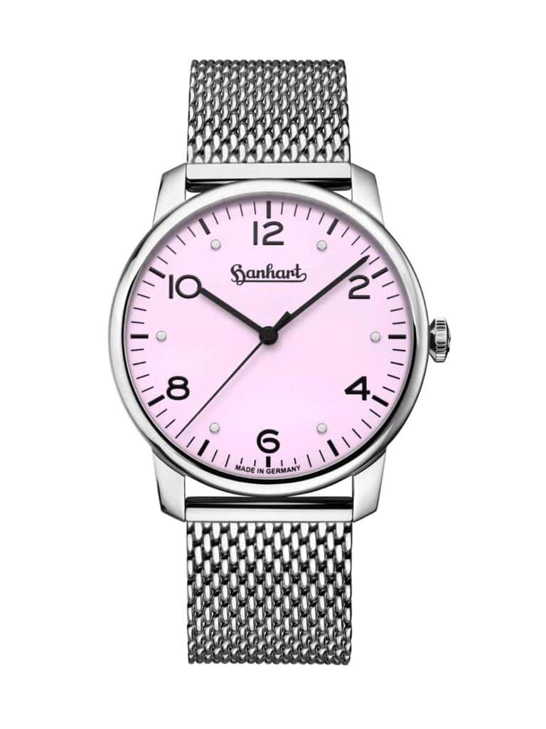 The name ‘Silva’ – Latin for forest – refers to the origin of this watch: it is manufactured in the Black Forest, in Gütenbach, where Hanhart has stood for precision and craftsmanship since 1882. The Silva combines purist design with classic Hanhart DNA. The 38.5 mm stainless steel case with a height of just 10 mm ensures perfect proportions and high wearing comfort – ideal for any wrist. The dial in pistachio green or pastel pink combines clear, high-contrast hands with striking dots and the historic Hanhart logo. The look: modern, tidy, functional.
