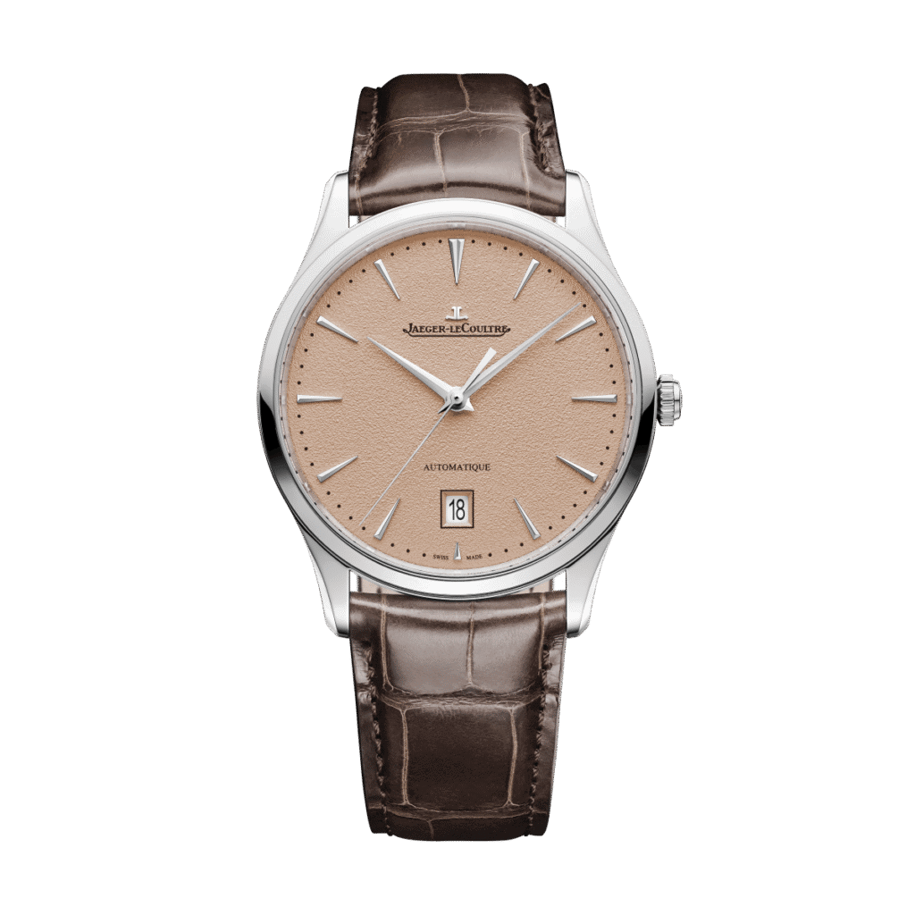 Each model is now offered with a superb new grained dial rendered in a soft, copper hue. Paired with the cool gleam of polished stainless steel, this warm, textured dial treatment brings a fresh and quietly luxurious energy to one of JLC’s most enduringly elegant lines.