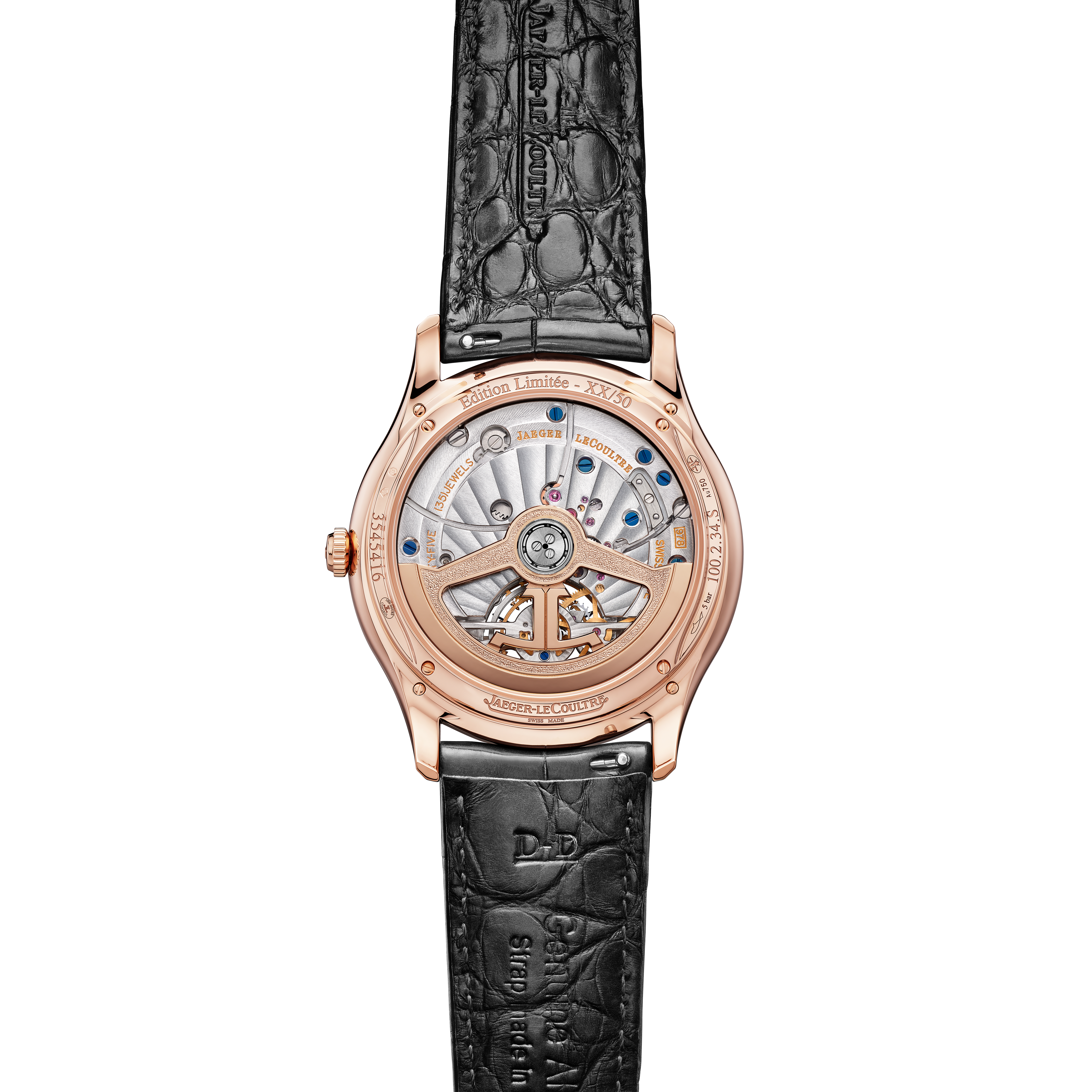 The collection is enriched with a new interpretation of the Master Ultra Thin Tourbillon Enamel. With a dial in anthracite grey Grand Feu enamel enhanced by a hand-guilloché sunray pattern and set in a 18k pink gold (750/1000) case, the new watch is offered in a limited edition of 50 pieces.