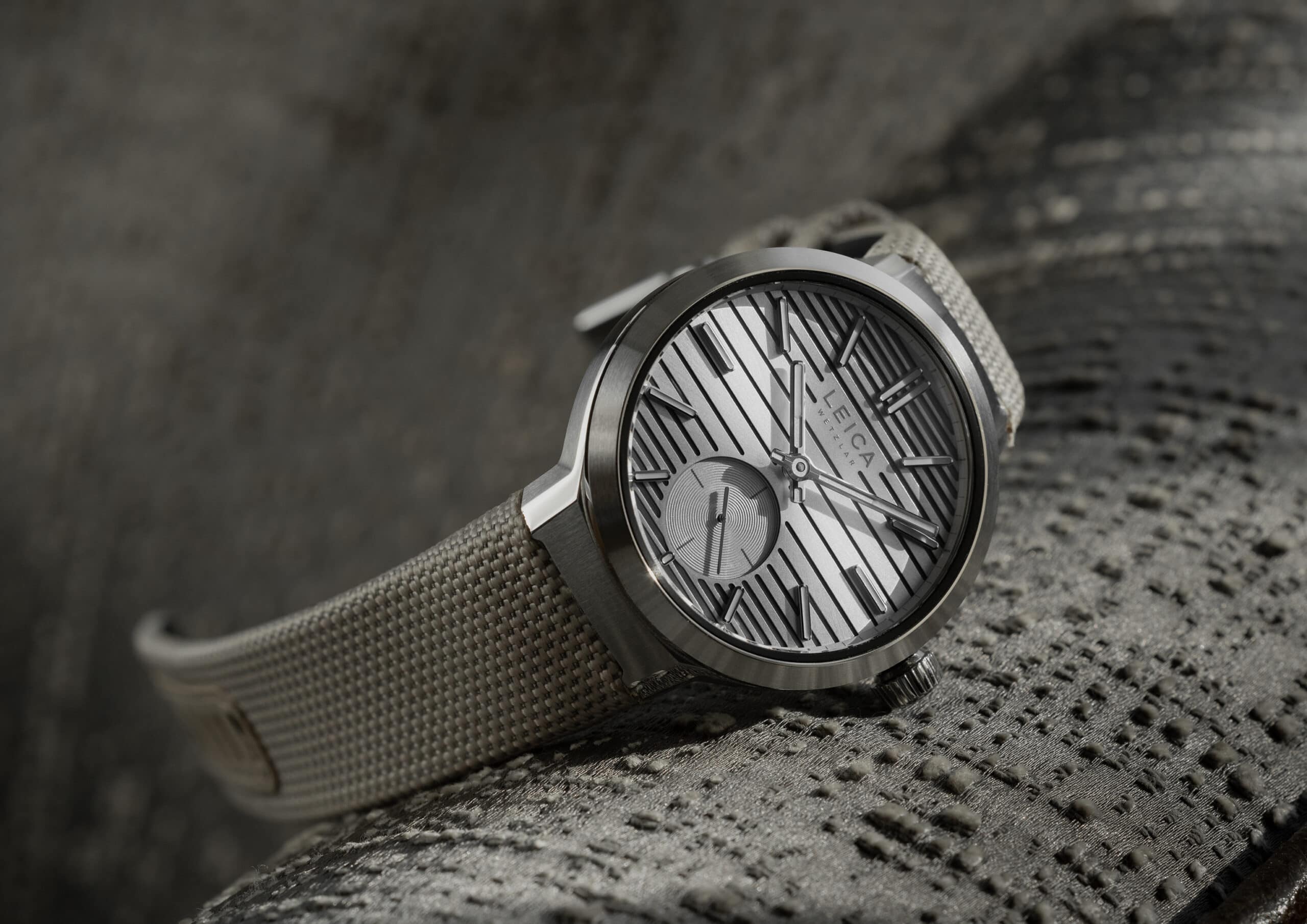 Each strap is meticulously handcrafted in Leica’s artisanal workshop, blending modern technology with traditional craftsmanship. Two exceptional materials have been used to create the watch straps. The first is a premium technical textile that is durable and resilient, offering exceptional strength and longevity; in beige, the fabric features a unique, eye-catching pattern that adds a touch of sophistication to the wrist. The second is high-quality rubber crafted from a robust material, offering excellent durability and comfort. Its bright orange hue and distinctive inverted “Clou de Paris” pattern make it ideal for those looking to make a bold style statement.