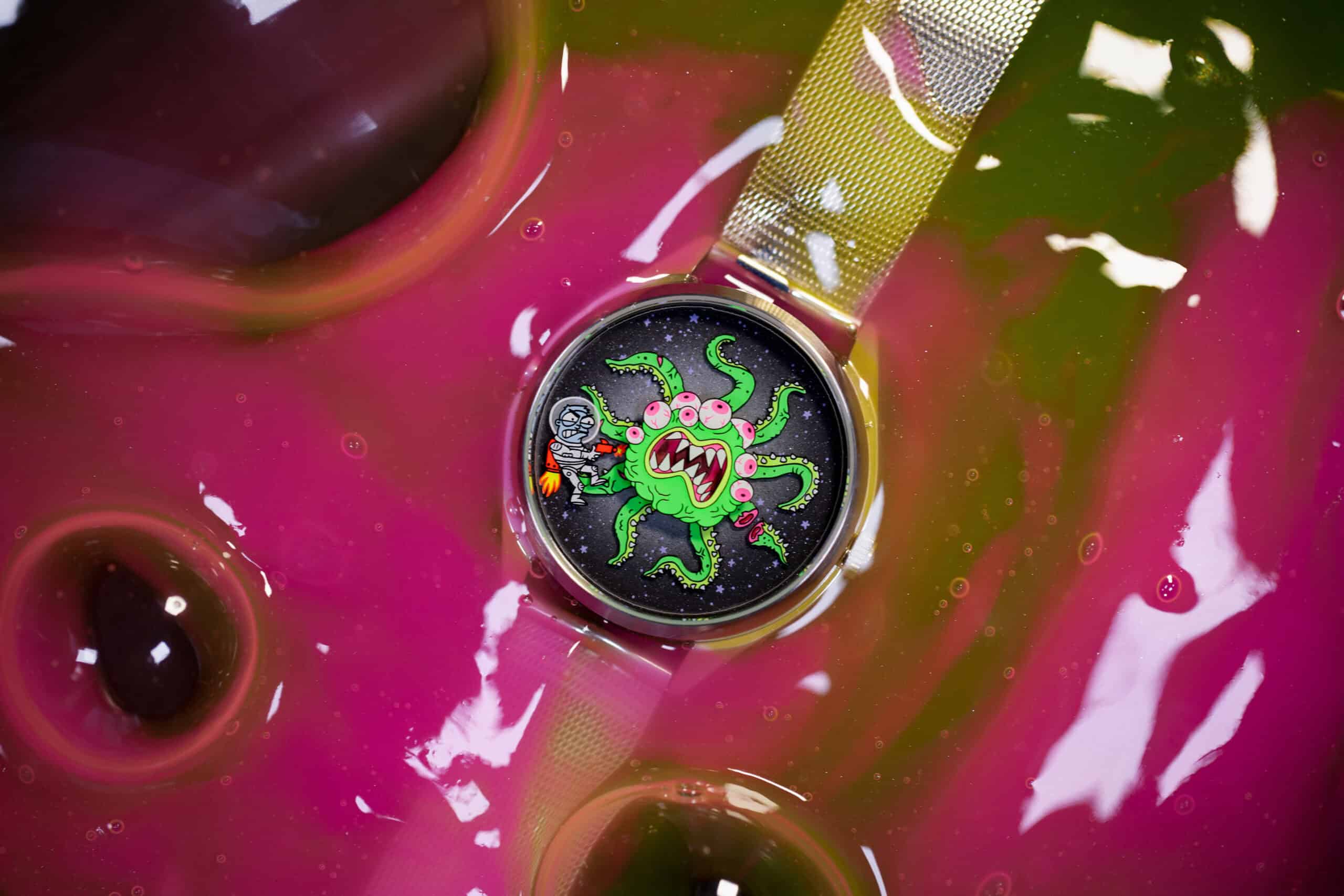 The watch – designed by British artist Onorio D’Epiro – features an illustrated astronaut in an endless battle with a neon space monster.