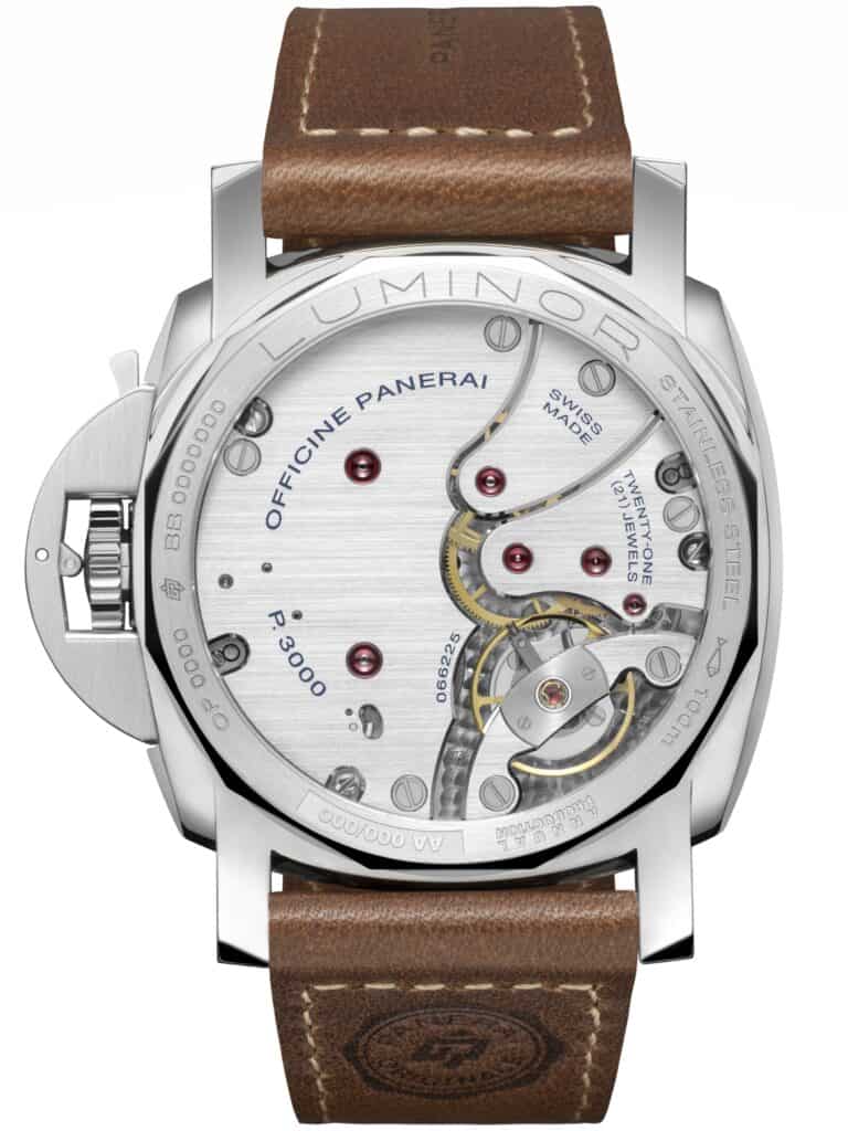 The historical inspiration continues inside the watch. Both novelties are powered by the hand-wound Panerai Calibre P.3000, visible through a sapphire caseback. Developed to echo the robustness and reliability of Panerai’s earliest instruments for the Royal Italian Navy, the movement reflects the design philosophy that defined the brand’s military watches.