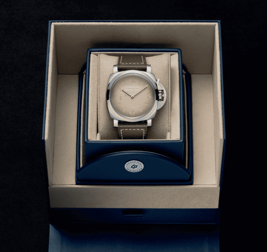 The Panerai Luminor PAM01735 will be available in Panerai boutiques from June 2026. Meanwhile, the limited-edition Panerai Luminor Forged Titanium PAM01629, produced in just 100 pieces, will arrive in November 2026, presented in a distinctive cherry blue wooden presentation box.
