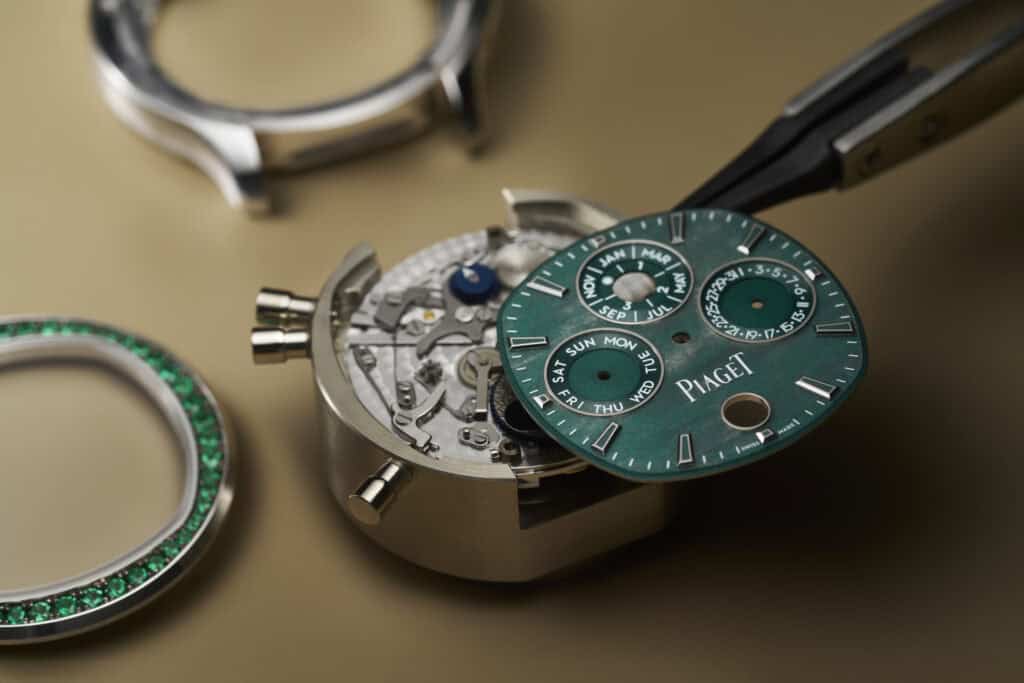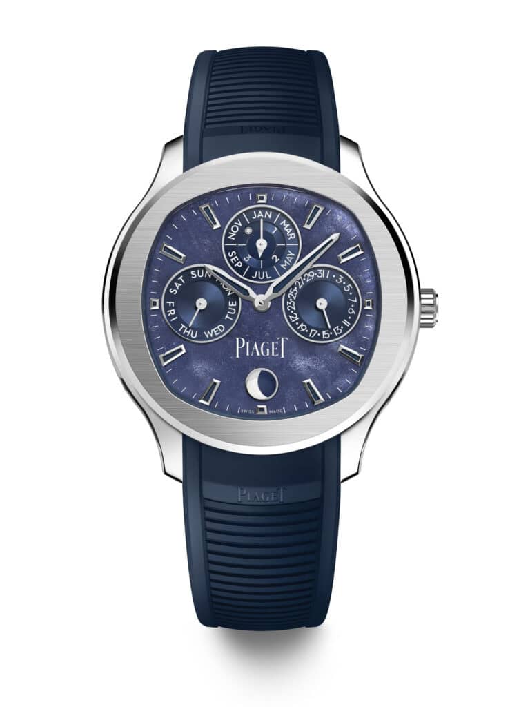 This ethos continues today, with the launch of the Piaget Polo Perpetual Calendar Obsidian Green and Obsidian Blue, reimagining flamboyance and everyday wearability. Conceived to elevate the everyday, each continues the story of shape-in-shape geometry into a unique combination.