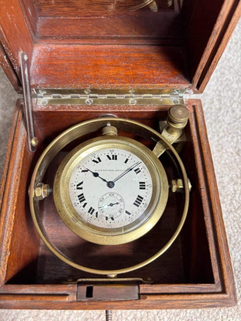 This Elgin National Watch Company Marine Chronometer is a quality timepiece known for its accuracy and reliability.