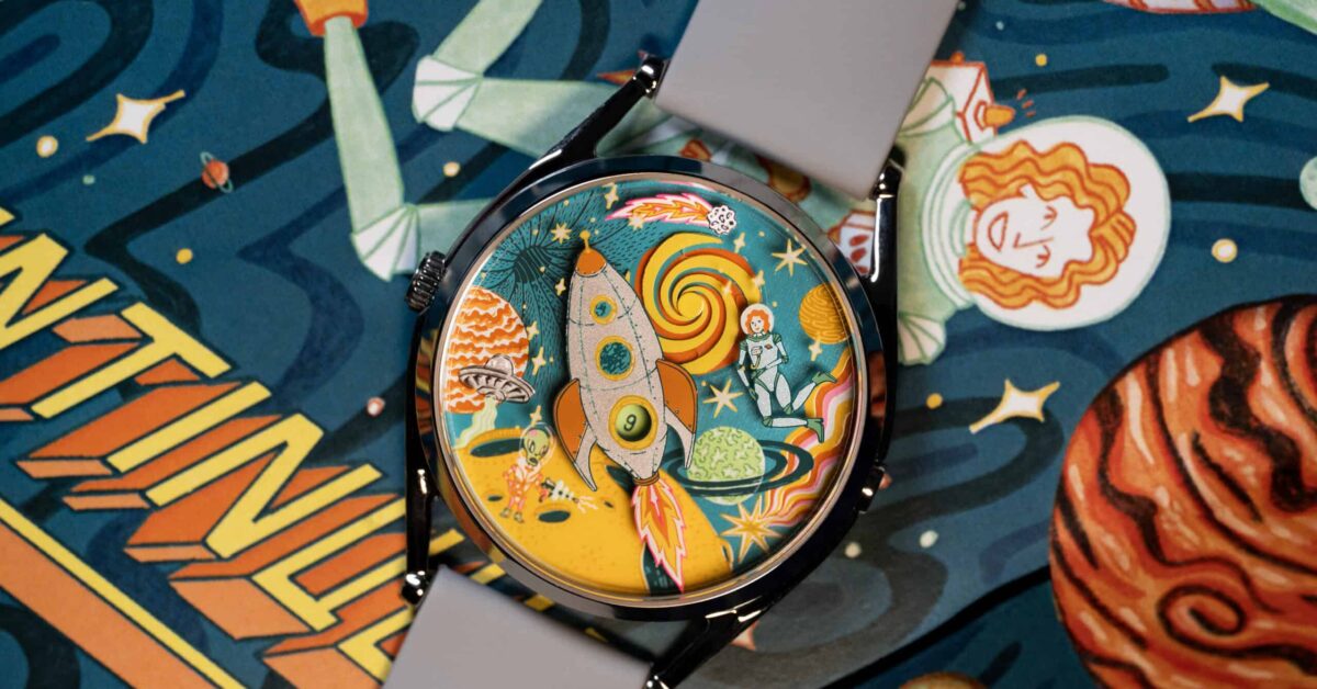 Mr Jones Watches has teamed up with an award-winning illustrator to launch a limited edition jump-hour watch with an intergalactic retro-futurism design. Designed by Jacqueline Colley, Continuum is an explosion of colour making up an outer space scene. Transporting its wearer to another planet...
