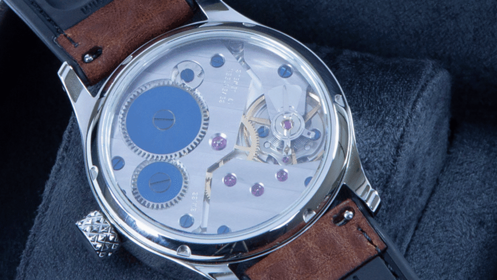 Each watch can be customised with a choice of dial finish, indicator colours (Gold, Rose Gold, or Platinum), seconds dial finish, hand colours, and strap options — allowing customers to create a watch that is uniquely theirs. The sapphire case back can also be laser engraved on the inside with a personal message or logo.
