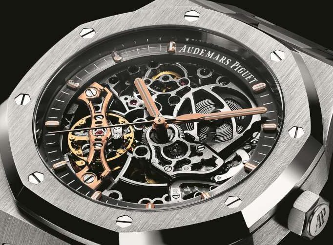 At Audemars Piguet, skeletonisation becomes architectural. The openworked calibre 3132 is defined by sharp internal angles, linear brushing, and a modern, almost industrial aesthetic.