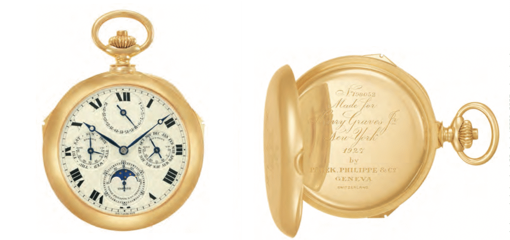 Graves came from a family of affluence, and his career as a banker gave him the means to pursue luxury hobbies. His interest in watches was particularly fuelled by his rivalry with James Ward Packard, another wealthy collector, during the early 20th century. The two engaged in a friendly competition to commission increasingly complex and exquisite watches, pushing the boundaries of horological artistry. Of the 30 known watches Graves commissioned from Patek Philippe between 1922 and 1951, 15 are known to have survived, most of them now at the Patek Philippe Museum in Geneva.