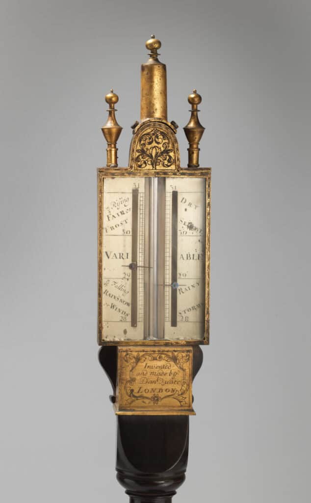 This barometer (above) was made by Daniel Quare, a leading London clockmaker who obtained a patent for a barometer design in 1695. This claimed that the barometer could be inverted without either spilling the mercury or allowing air to get into the tube.