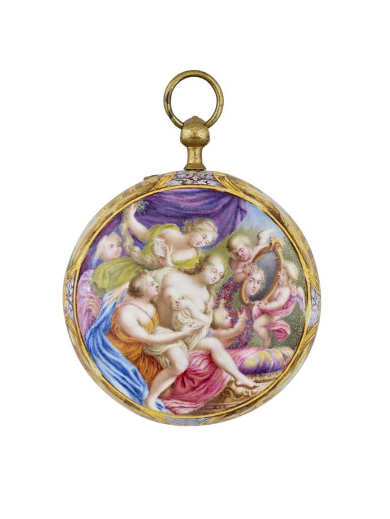 The Huaud (or Huaut) family were Geneva-based enamellers, known for their use of vibrant colours in their beautiful artworks. Their watch cases were used by watchmakers all over Europe.