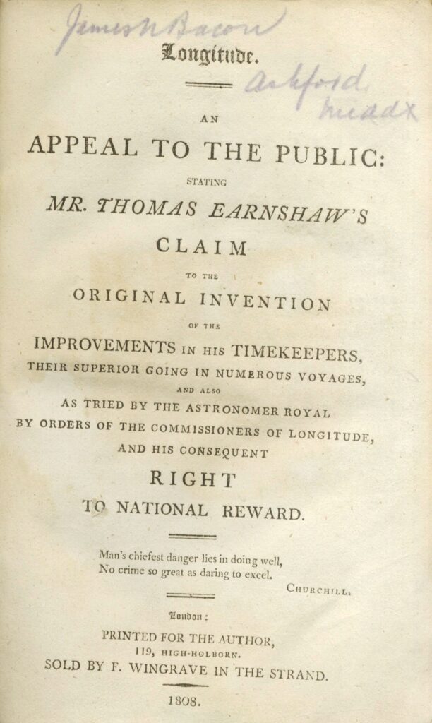 Longitude. An Appeal to the Public: Stating Mr. Thomas Earnshaw’s Claim. Image courtesy of Bonhams