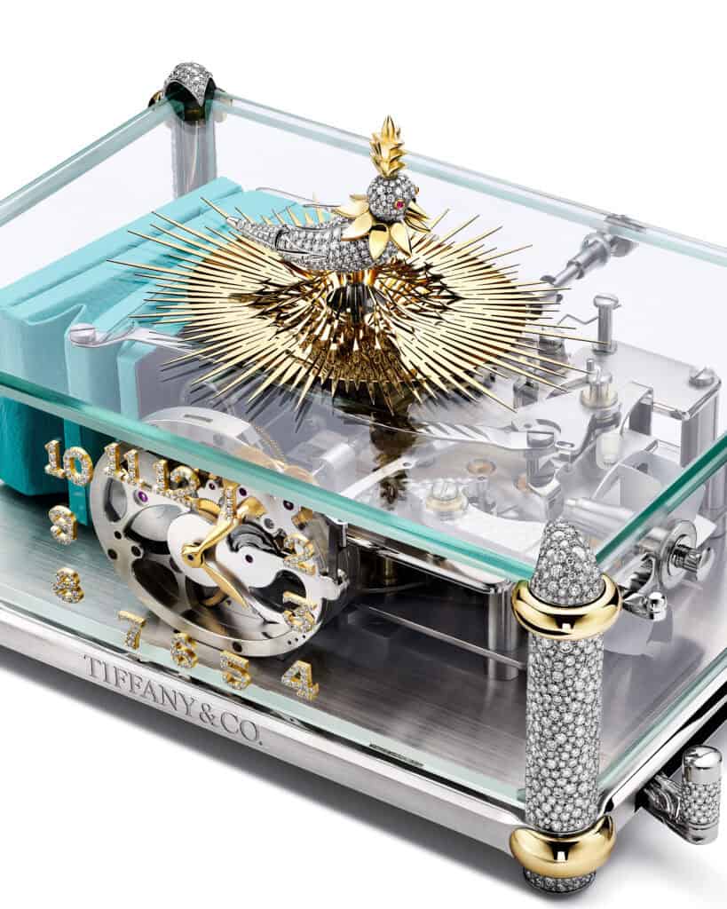 Adding a final touch of narrative charm, the bird is programmed to sing automatically each day at 5 p.m. a subtle homage to Tiffany’s iconic Fifth Avenue flagship. Of course, the performance can also be summoned on demand, delivering a ten-second burst of melody, repeatable up to eight times before rewinding is required.