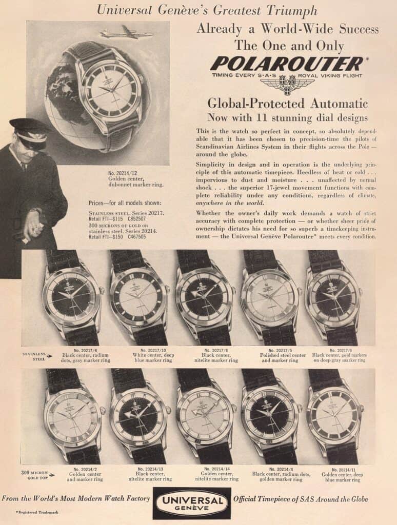 Universal Genève will mark the 70th anniversary of the first Scandinavian Airlines System (SAS) flight over the North Pole from Copenhagen to Los Angeles in 1954 with three special tribute Polerouter SAS watches.
