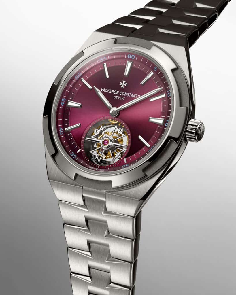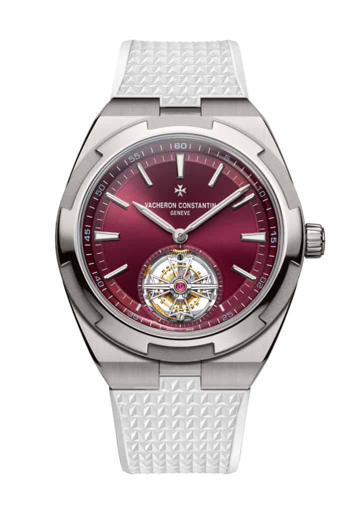 Vacheron Constantin pushes the Overseas collection into new territory with its first tourbillon model combining grade 5 titanium and a deep red dial, a bold yet disciplined expression of modern high watchmaking.