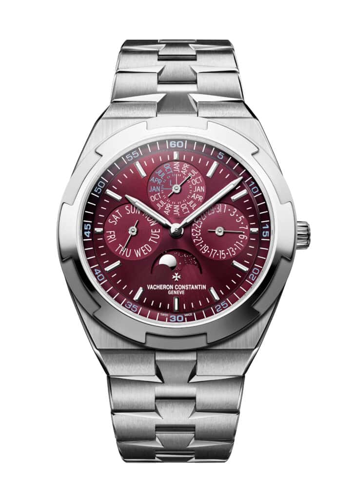 Vacheron Constantin have created two new versions of the Overseas Perpetual Calendar Ultra-Thin in pink gold with a matching pink gold dial and in white gold with a burgundy lacquer dial.