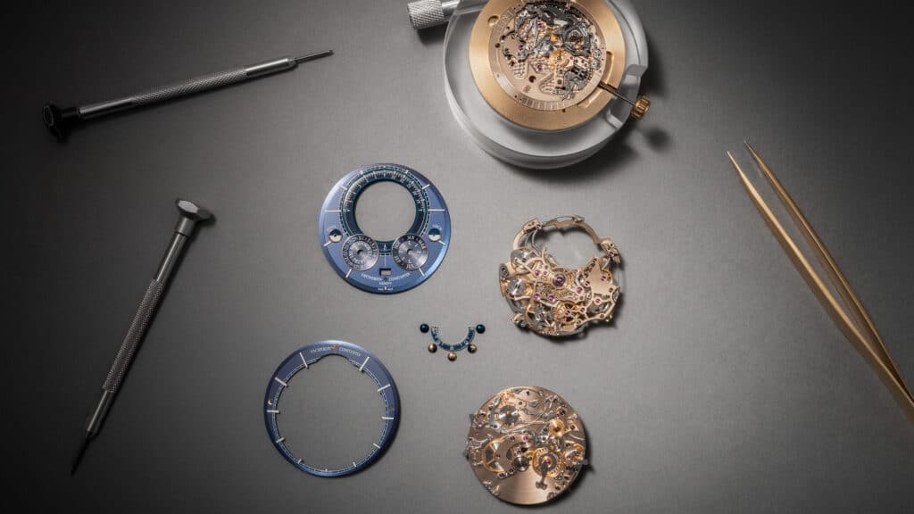 Depending on the wearer’s inclination, the watch can display either mean civil time or true solar time, both rendered with exquisite clarity.