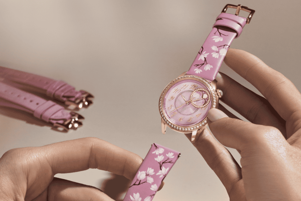 Yet it is the strap that truly sets this creation apart. For the first time, métiers d’art extend beyond the dial and onto the wrist itself. A supple calfskin strap is hand painted with blossoming flowers, each brushstroke applied with meticulous care. The result is not simply decorative, but deeply personal, transforming every piece into a miniature canvas of wearable art.