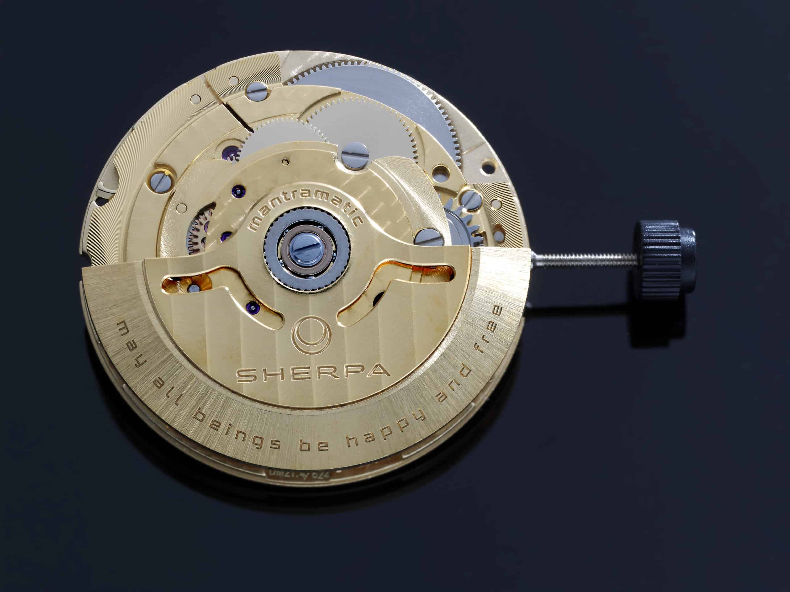 Sherpa combine the revolutionary watch case designs from the past with modern techniques and the highest quality materials to ensure their watches will stand the test of time. But, hidden beneath the surface of the Sherpa Ultradive and OPS watch dials and inside the movement there lies a fascinating unique feature. The mechanical movement inside is not a regular automatic; it is a Mantramatic!